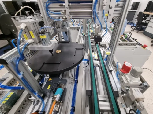 Modułowe stanowisko dydaktyczne odzwierciedlające kompletną linię produkcyjną, składa się z siedmiu połączonych ze sobą stacji. Każda z nich realizuje określony etap procesu, dzięki czemu użytkownicy mogą prześledzić cały cykl produkcyjny — od montażu po magazynowanie — w warunkach zbliżonych do rzeczywistego środowiska przemysłowego.
